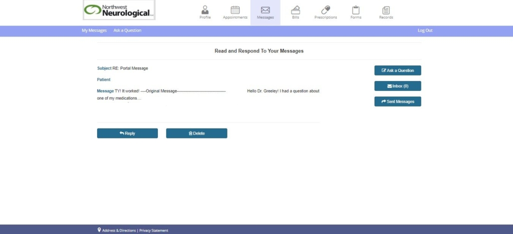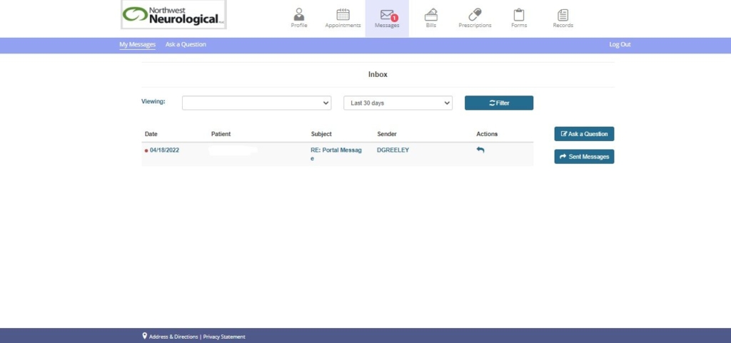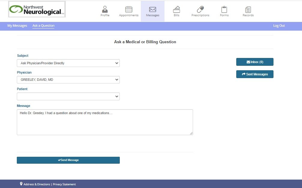 • The Patient Portal is HIPPA-protected. For any non-medical (e.g. billing) questions, please e-mail info@nwn4me.com. All HIPAA information should not be sent outside of the Patient Portal.